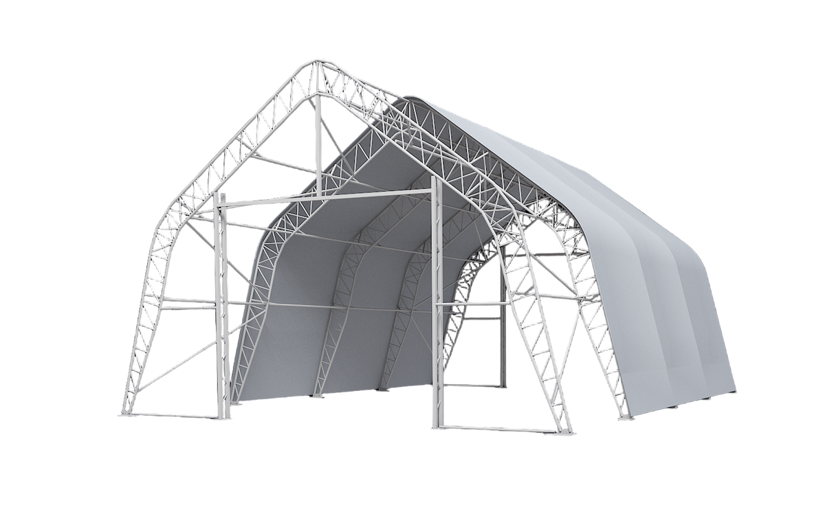 Introducing the Double Truss Peak M Model Storage Shelter W30'×L40'×H20' (304020), a compact yet durable shelter engineered for Canadian weather conditions. Built with a reinforced double truss peak frame, this model offers exceptional wind and snow resistance, with a wind load capacity of 1.35 kN/m² and a snow load capacity of 2.5 kN/m².