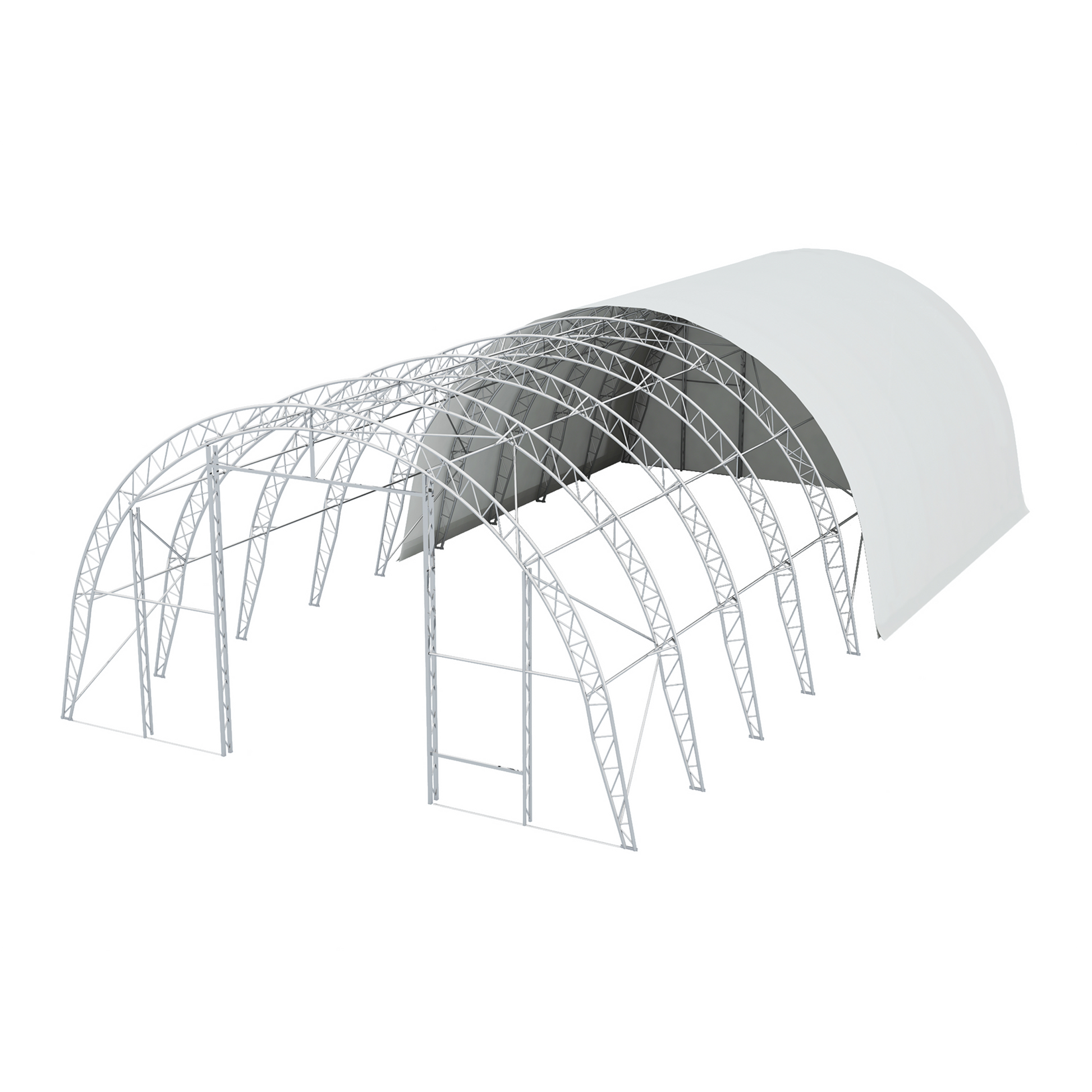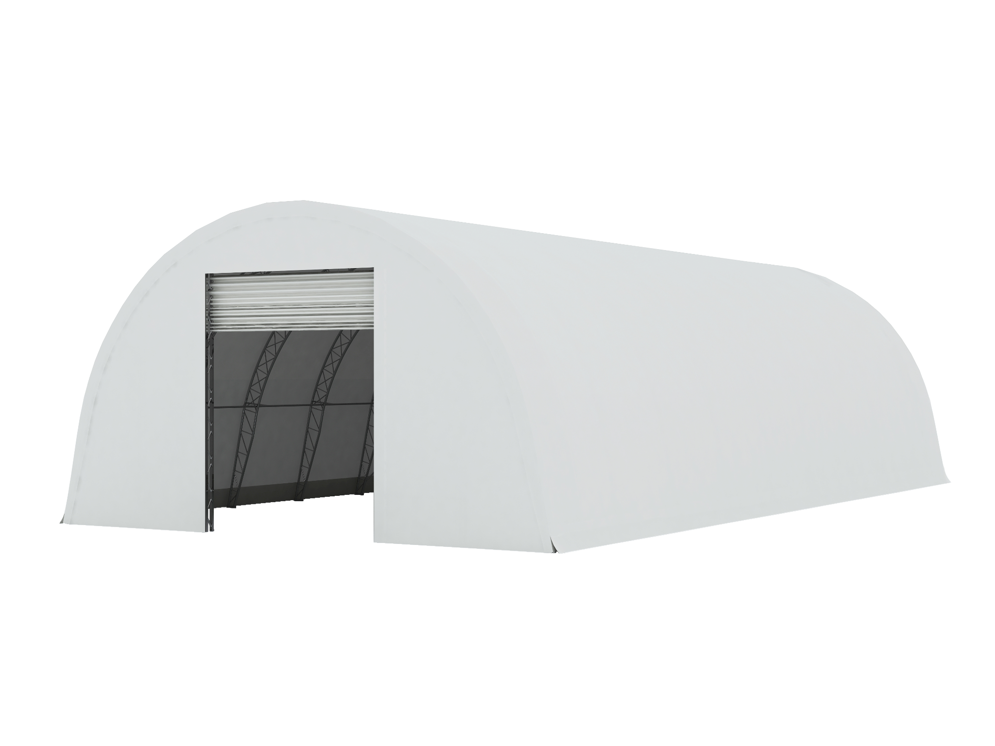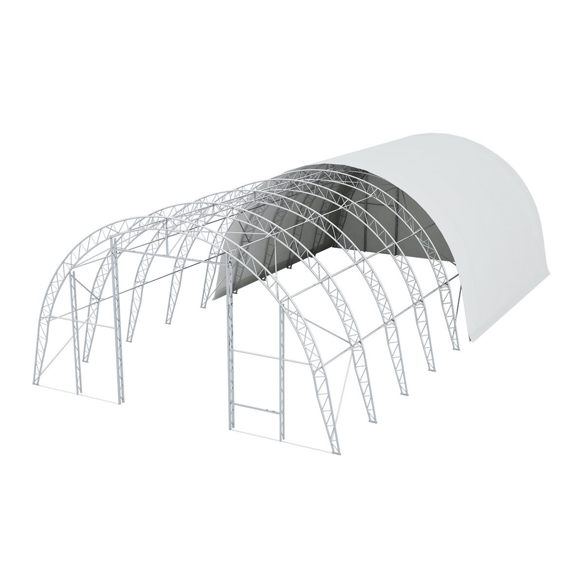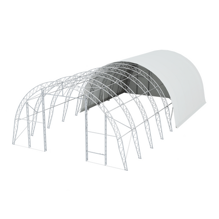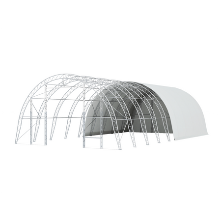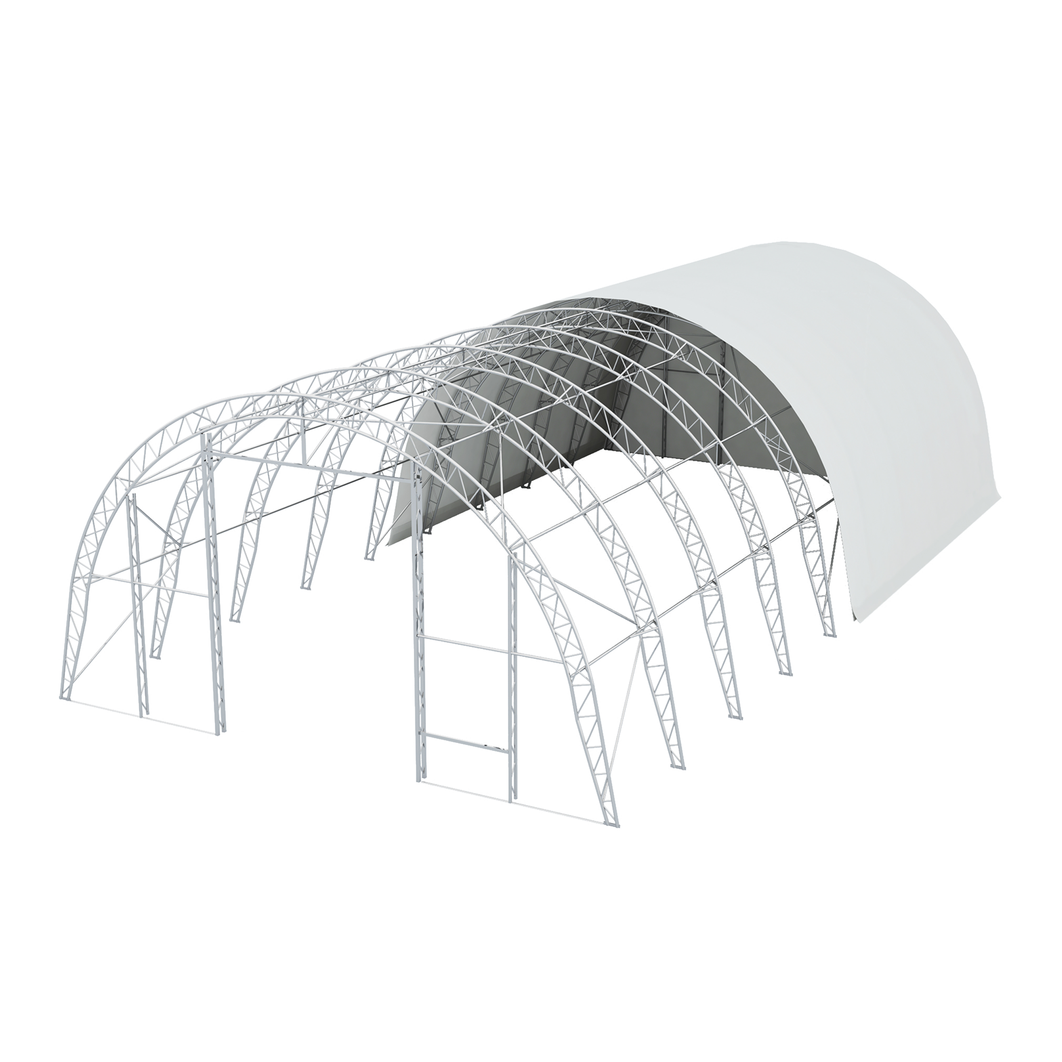 Introducing the Double Truss Round M Model Storage Shelter W40'xL80'xH22' (408022), a premium solution designed to withstand the toughest local weather conditions. Engineered by Canadian designers specifically for our climate, this shelter offers enhanced wind and snow resistance, with a wind load capacity of 1.35kN/m² and a snow load capacity of 2.5kN/m², making it a durable choice for year-round protection.