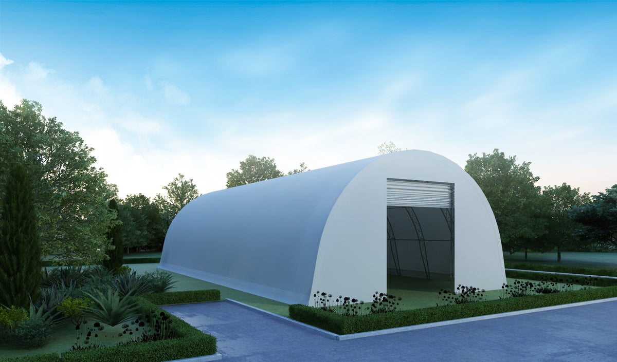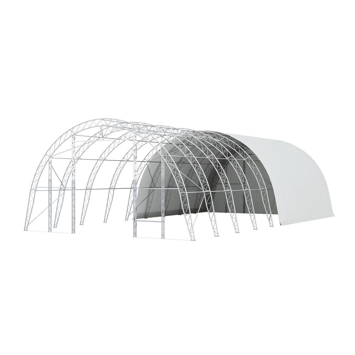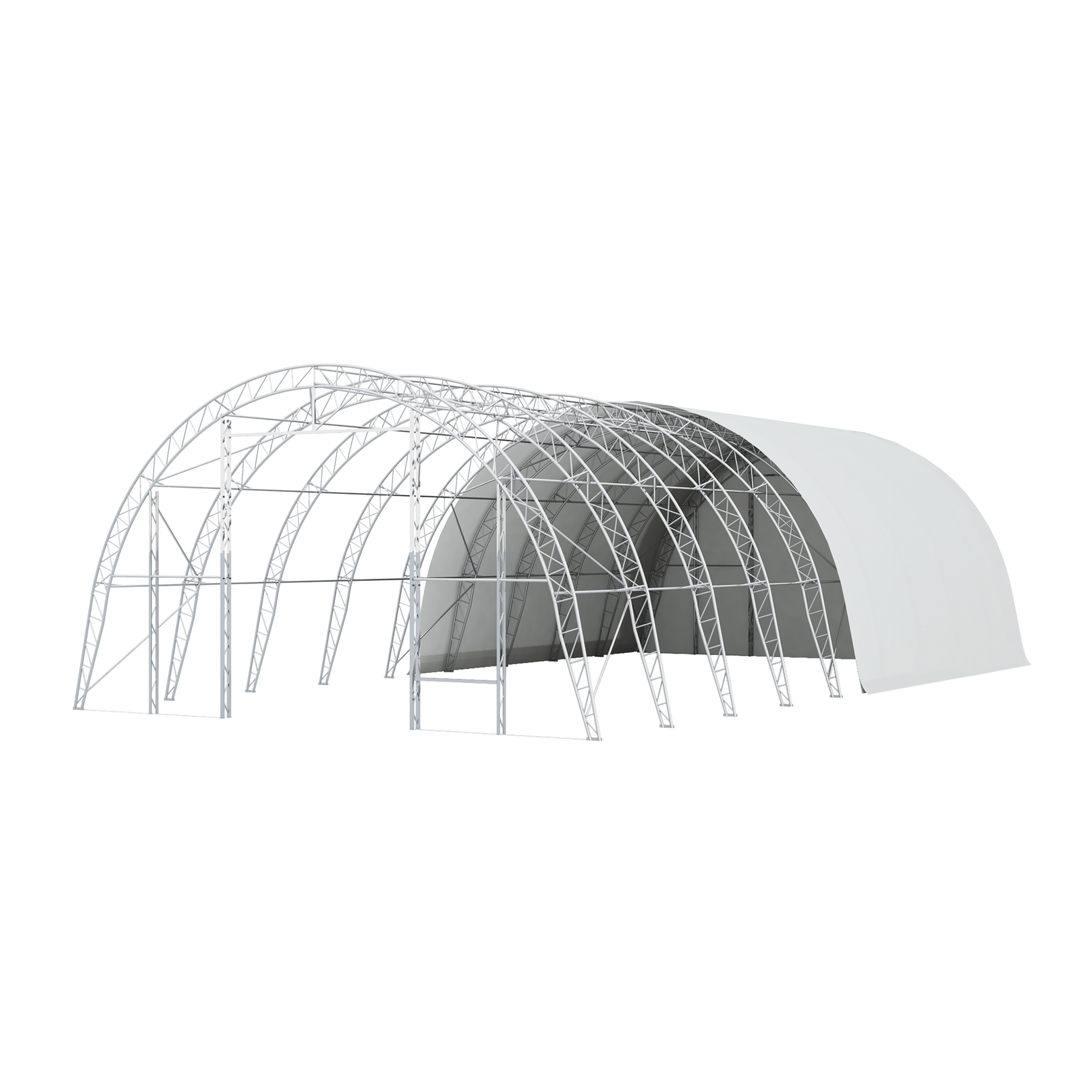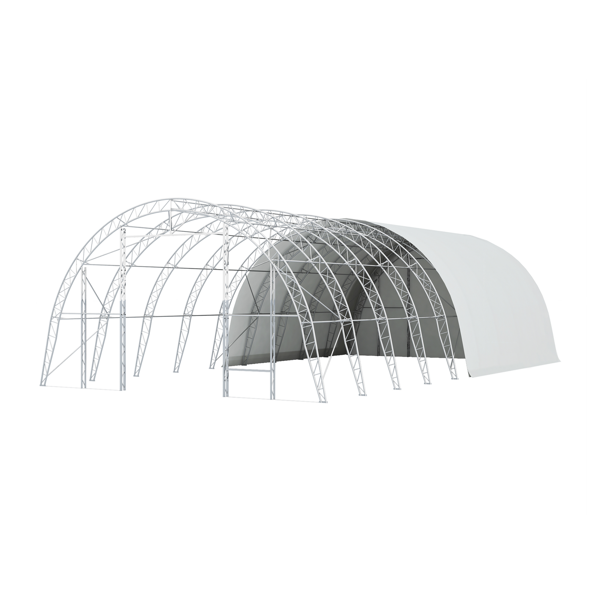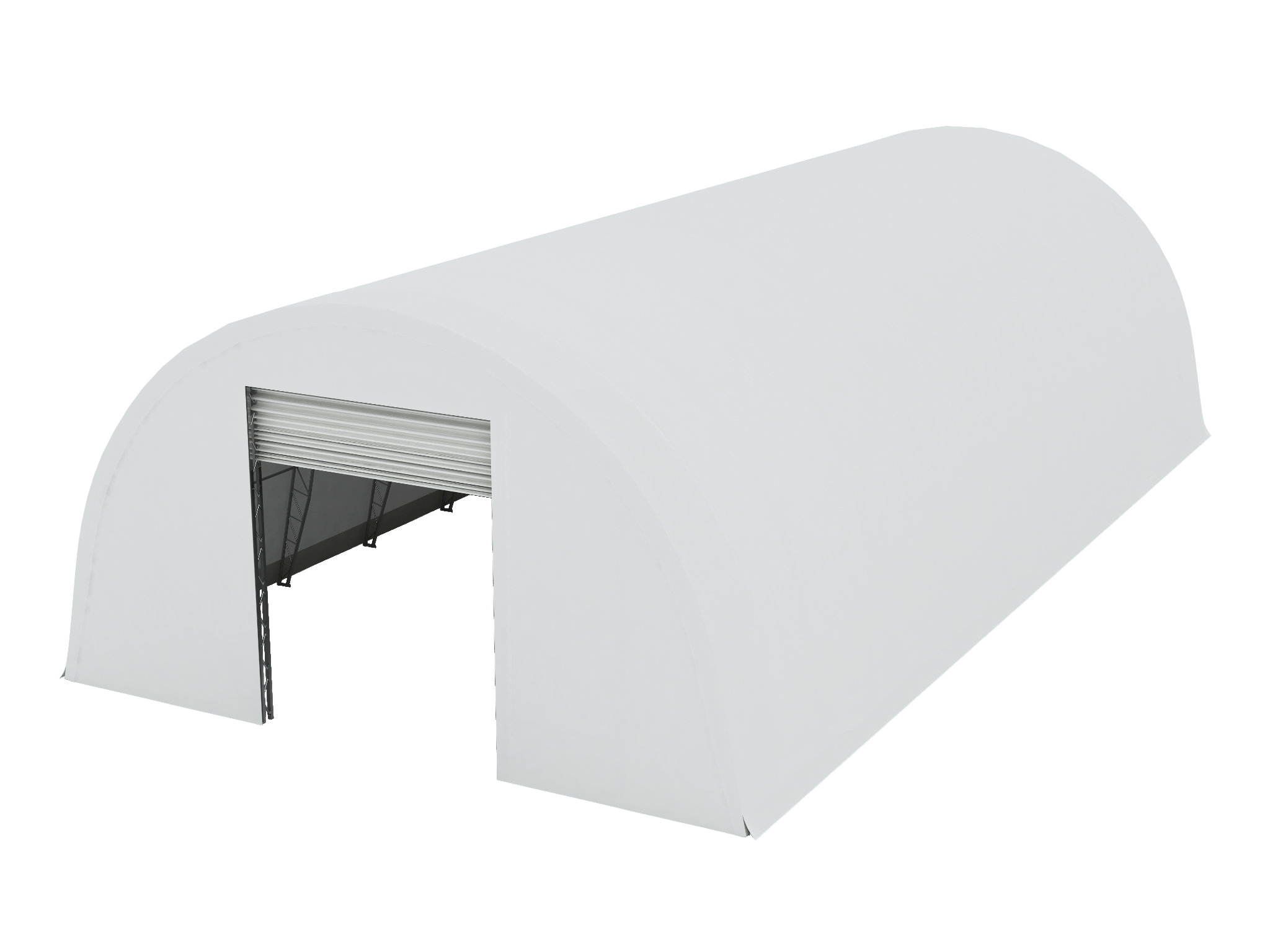 Introducing the Double Truss Round M Model Storage Shelter W40'xL80'xH22' (408022), a premium solution designed to withstand the toughest local weather conditions. Engineered by Canadian designers specifically for our climate, this shelter offers enhanced wind and snow resistance, with a wind load capacity of 1.35kN/m² and a snow load capacity of 2.5kN/m², making it a durable choice for year-round protection.