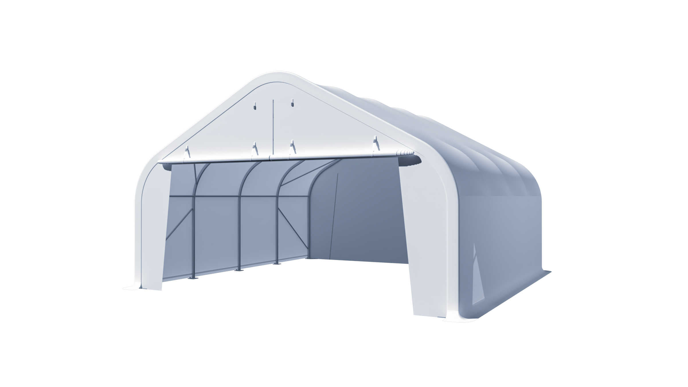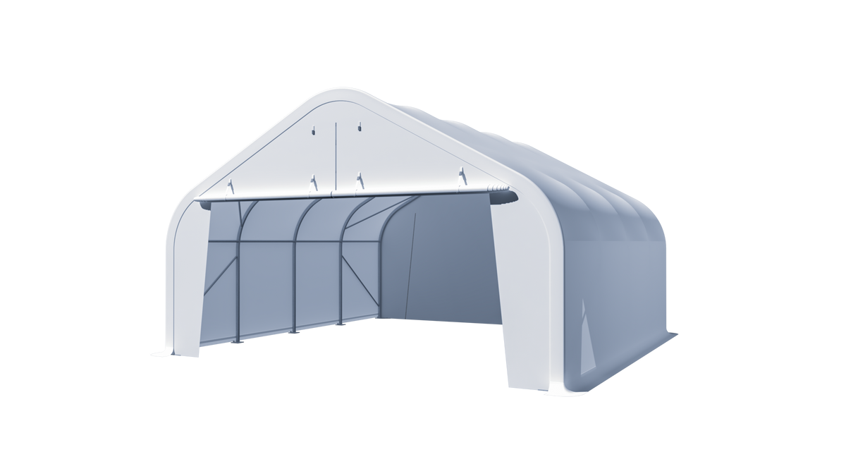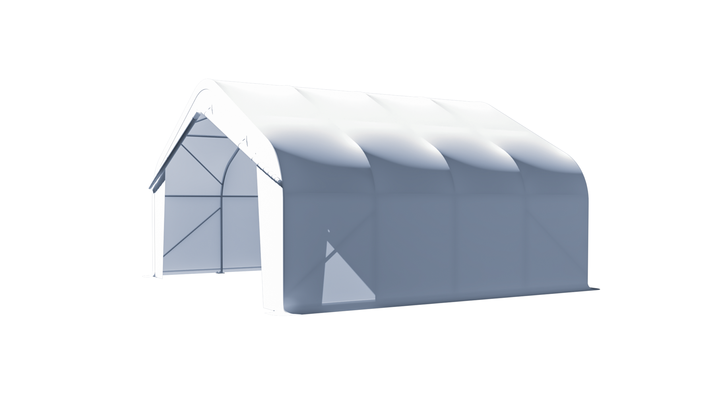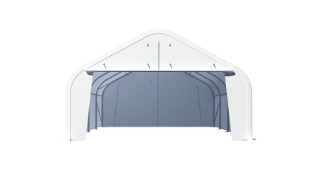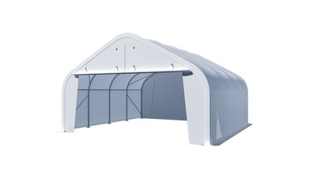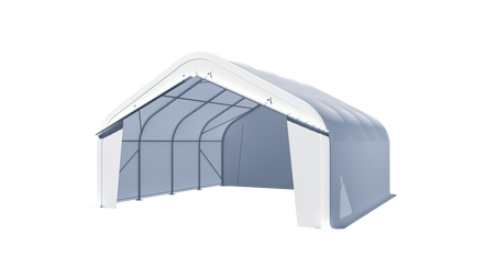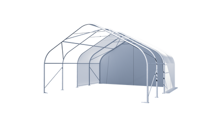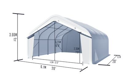 The Gold Mountain Storage Shelter W20’xL20’xH12’ (202012) - Single Truss 450g (16oz) PVC is the perfect solution for anyone looking for a strong and reliable shelter to store and protect their items. With its galvanized steel construction, it is built to last and is resistant to rusting and corrosion, making it perfect for any weather condition. The PVC fabric is stronger than PE, providing UV resistance and fire retardant, while also providing bright natural light to help save on utility bills. The double doors placed at both ends make it easy to enter and exit, while the quality of structure is designed by experienced engineers and advanced technology, making it easy to install and dismantle. With its versatility and durability, the Gold Mountain Storage Shelter W20’xL20’xH12’ - Single Truss 450g (16oz) PVC is the perfect choice for any storage or protection needs.