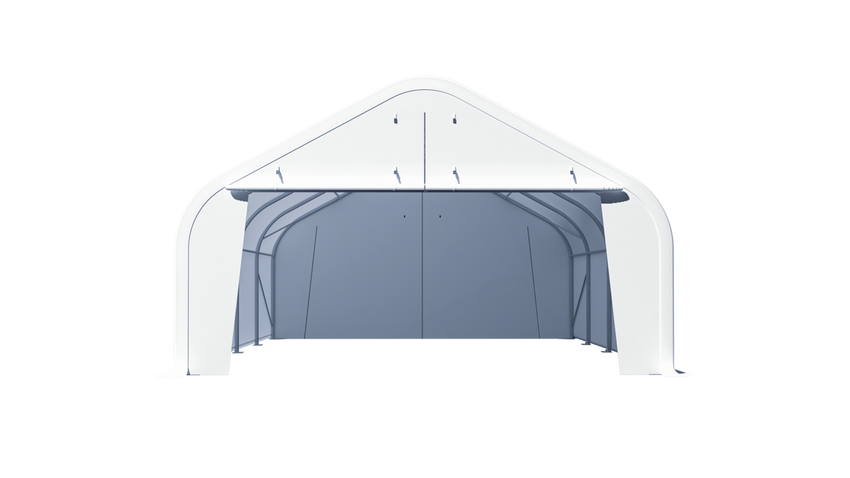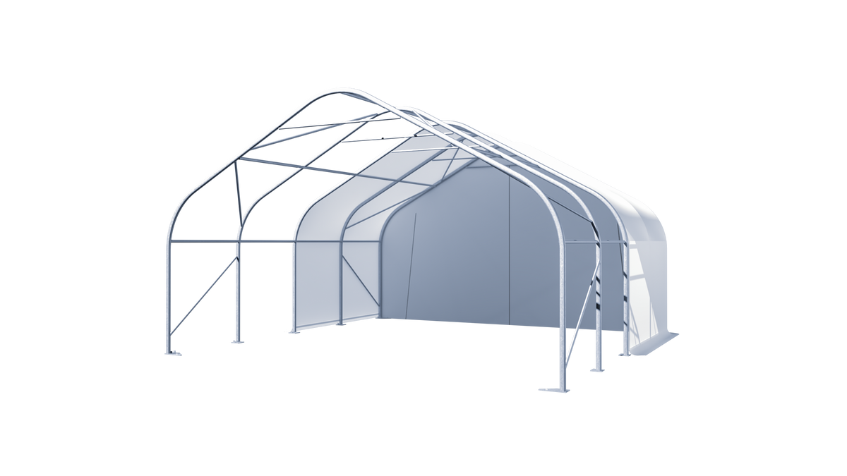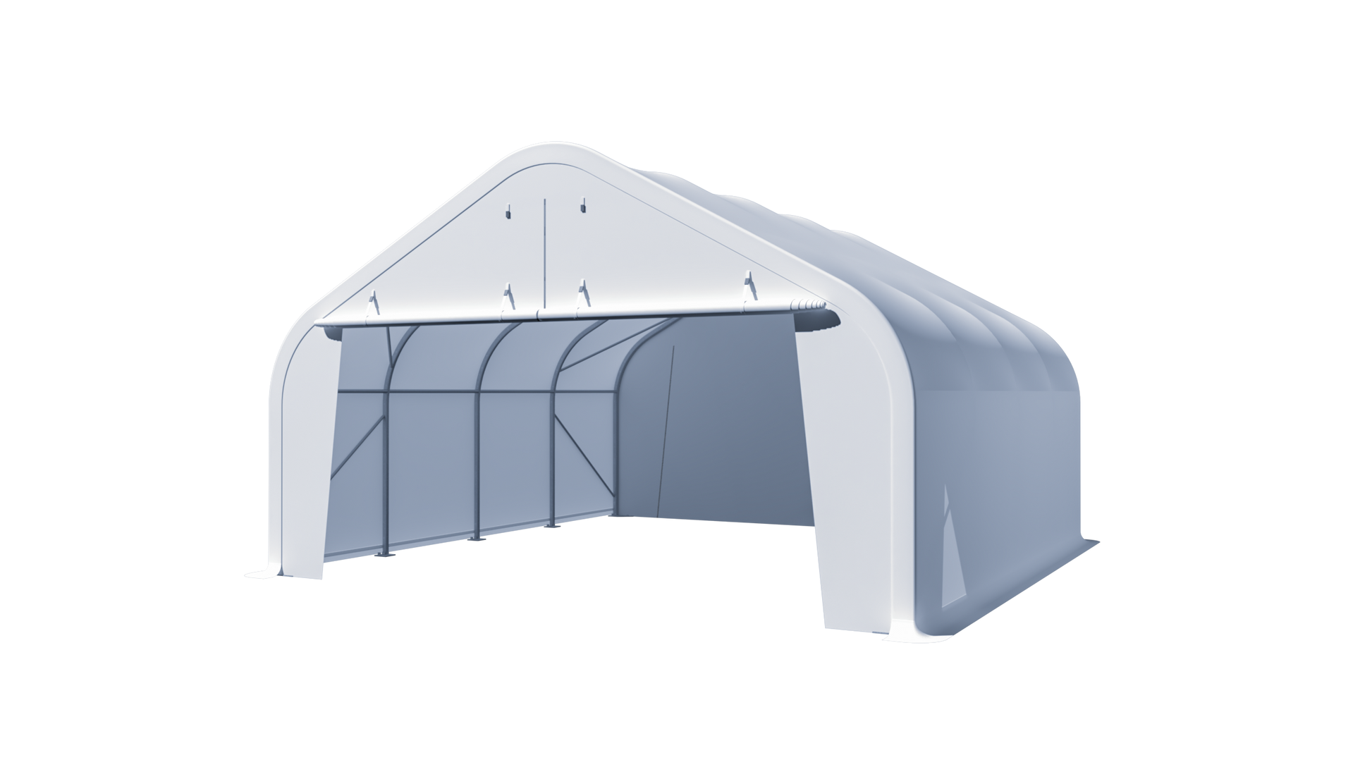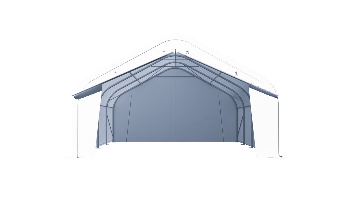 The Gold Mountain Storage Shelter W20’xL20’xH12’ (202012) - Single Truss 450g (16oz) PVC is the perfect solution for anyone looking for a strong and reliable shelter to store and protect their items. With its galvanized steel construction, it is built to last and is resistant to rusting and corrosion, making it perfect for any weather condition. The PVC fabric is stronger than PE, providing UV resistance and fire retardant, while also providing bright natural light to help save on utility bills. The double doors placed at both ends make it easy to enter and exit, while the quality of structure is designed by experienced engineers and advanced technology, making it easy to install and dismantle. With its versatility and durability, the Gold Mountain Storage Shelter W20’xL20’xH12’ - Single Truss 450g (16oz) PVC is the perfect choice for any storage or protection needs.