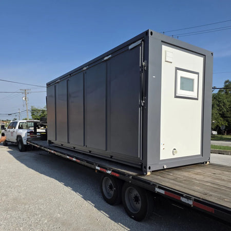 The Bastone Mobile Expandable Prefab House (1920) features a durable metal embossed panel with an integrated insulation layer, ensuring efficient thermal regulation. Designed with a seven-brick-thick wall (model Br-03-008), it offers enhanced structural strength and insulation. Equipped with U.S. standard 110V electrical wiring, this grey prefab unit includes a built-in cabinet for added convenience. Ideal for reliable, quick-deploy housing solutions that combine robust construction with practical functionality.