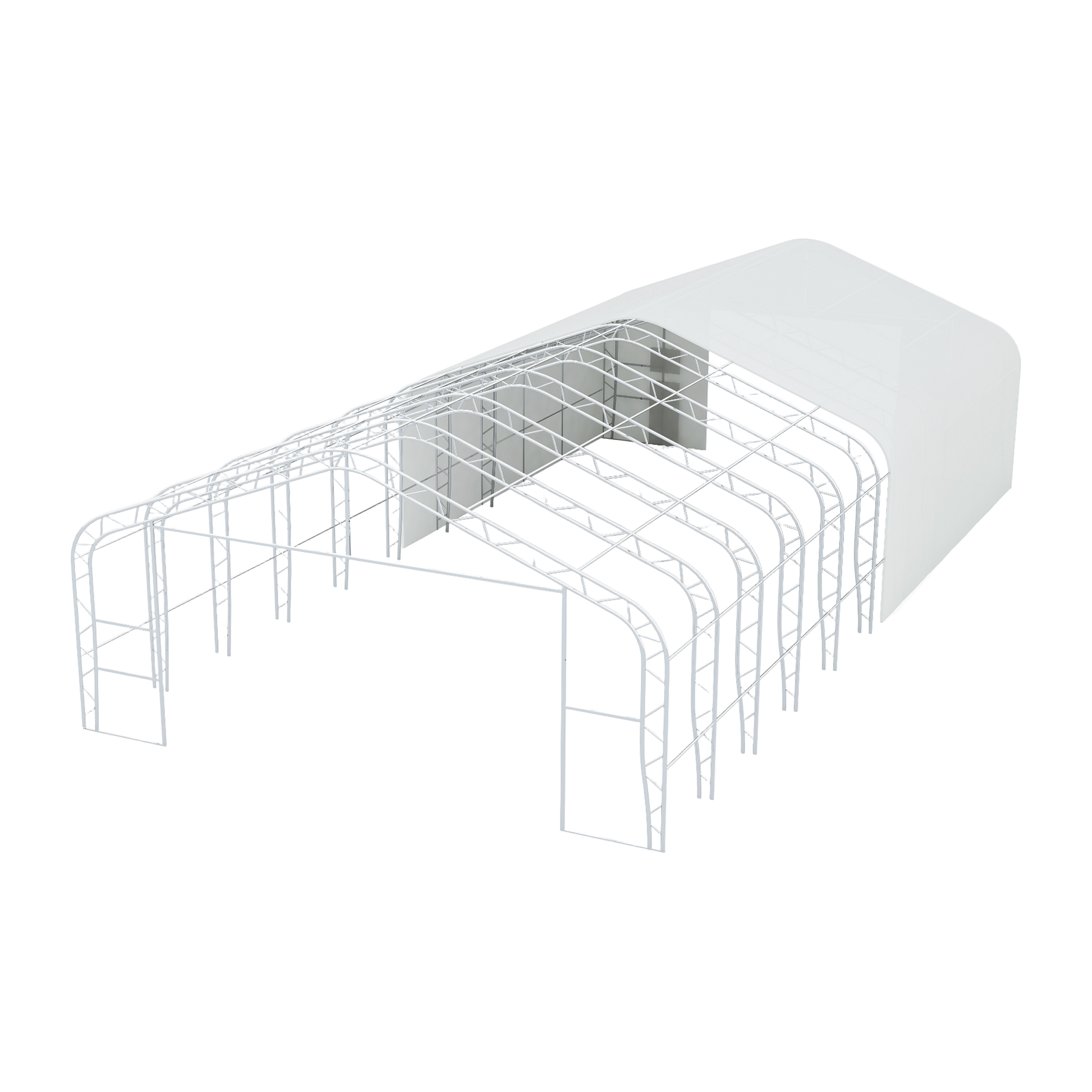 Introducing the Double Truss Peak M Model Storage Shelter W50'×L100'×H23' (5010023), a premium solution engineered by Canadian designers for our climate. Its upgraded double-truss peak structure delivers superior strength with wind load 1.35 kN/m² and snow load 2.5 kN/m², ensuring dependable, year-round protection. Whether for storage or as a workspace, the expansive footprint and 23-ft peak height offer generous clearance and flexibility.