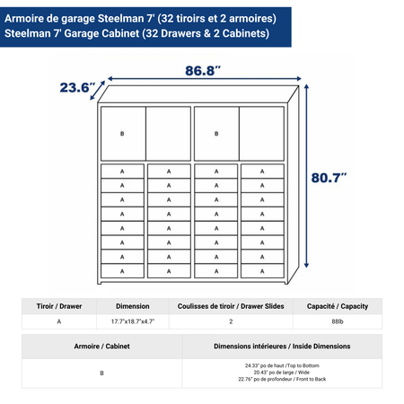 Armoire de garage Steelman 7' (32 tiroirs et 2 armoires)