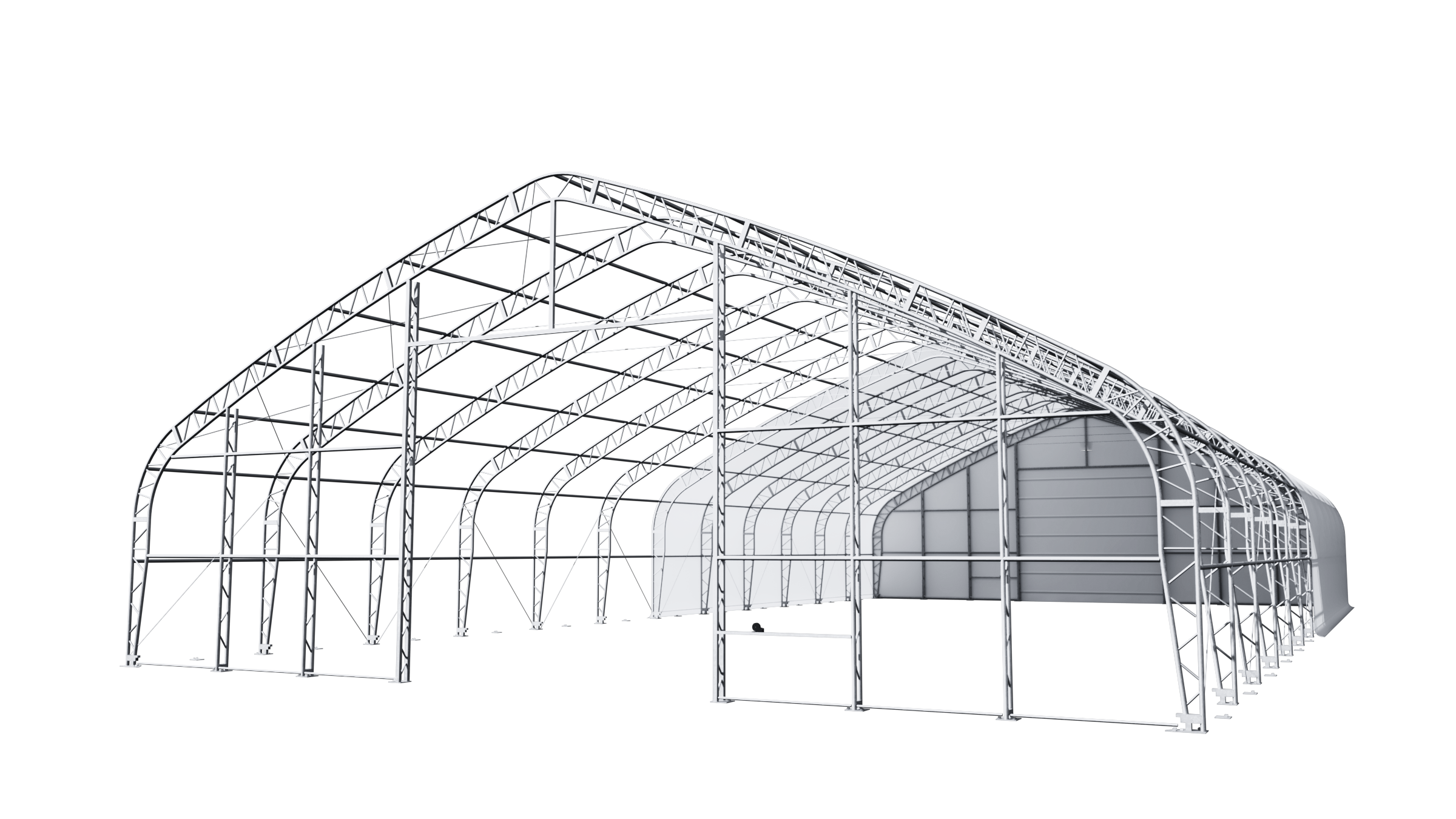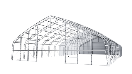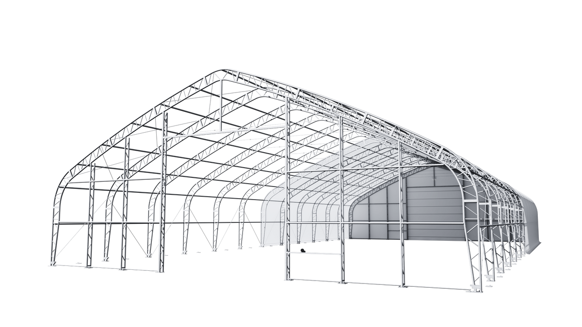Double Truss Peak M Model Storage Shelter W60'xL120'xH27'