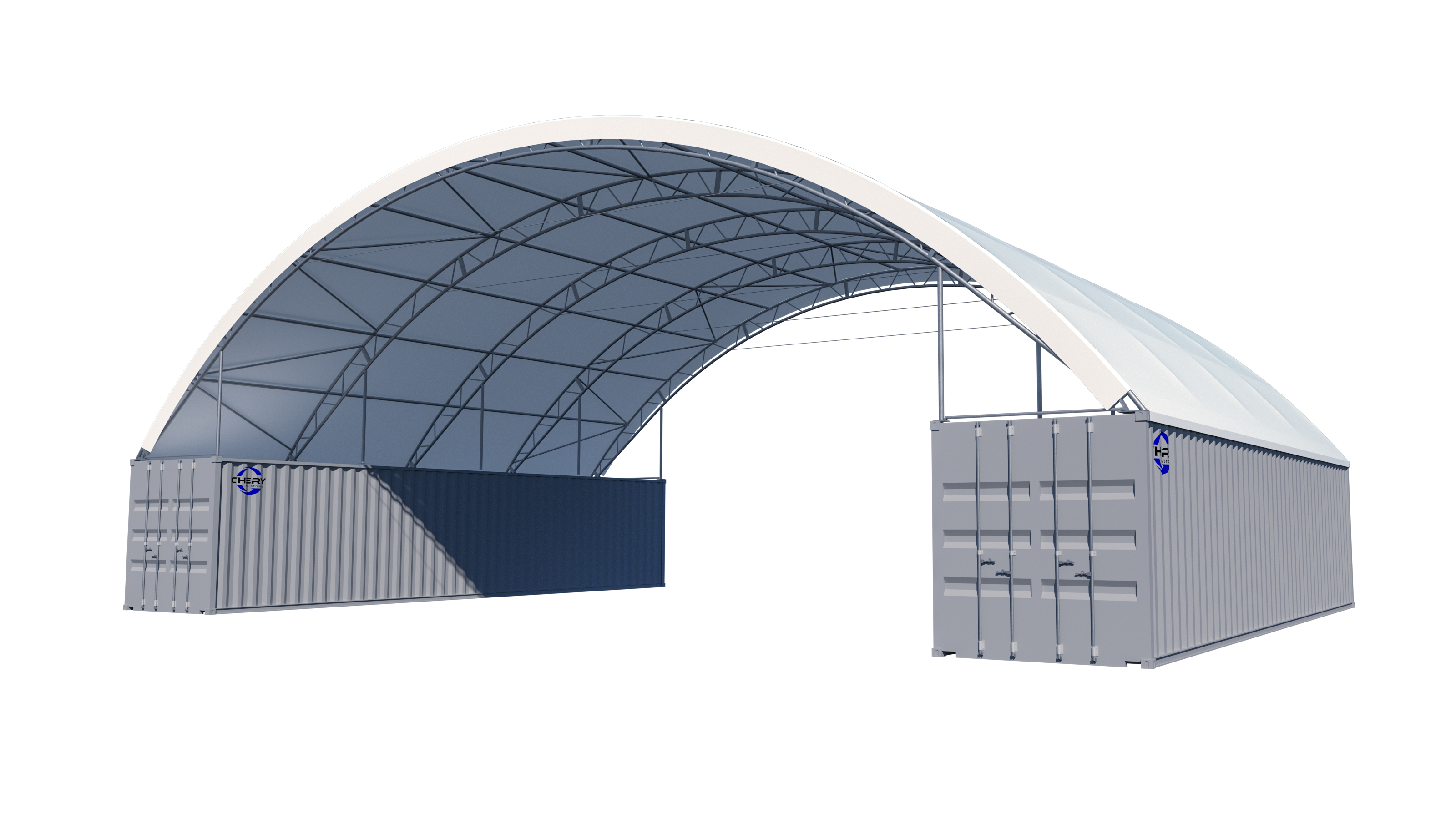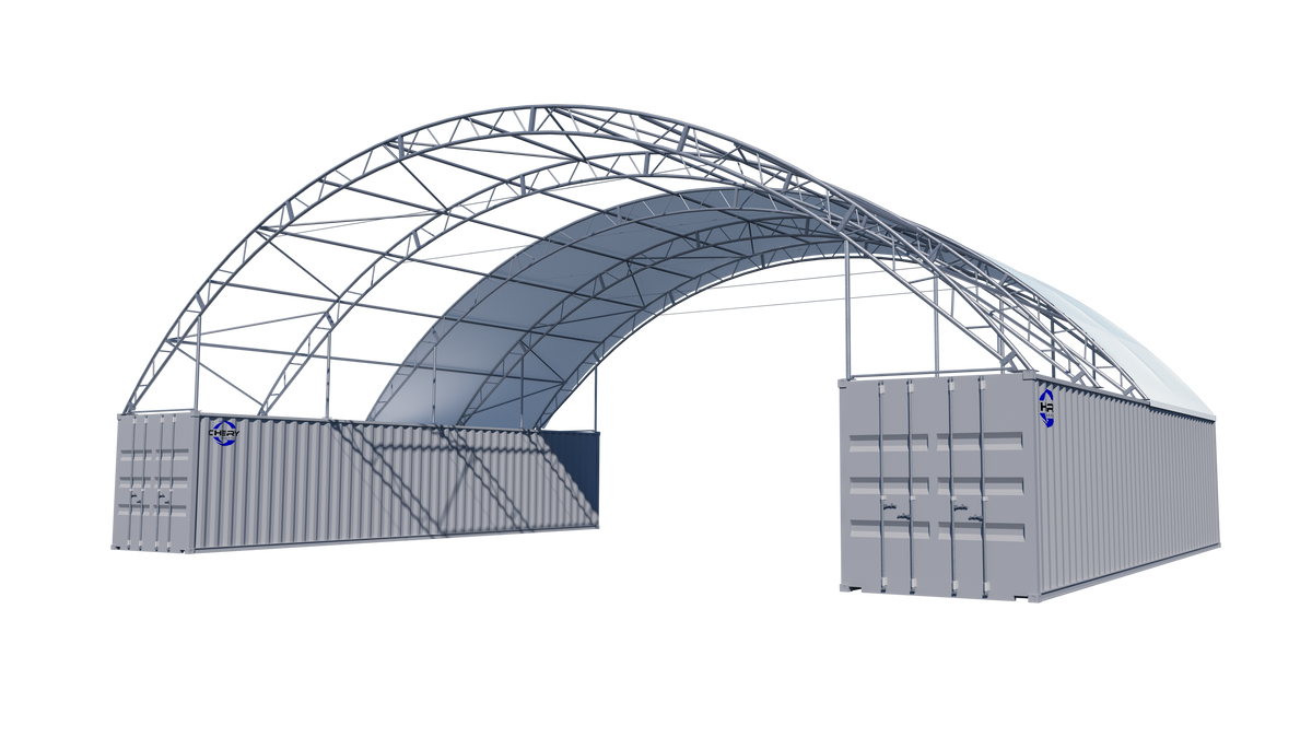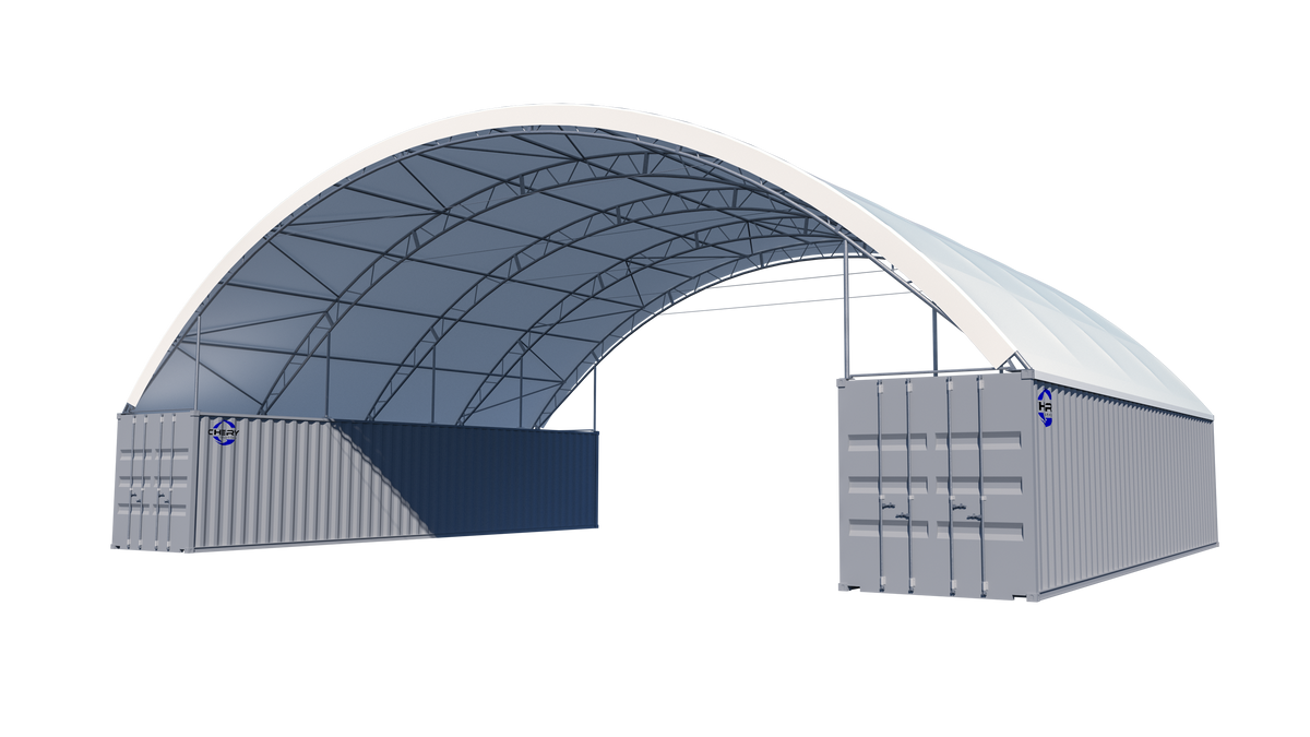 Double Truss Shipping Container Canopy Shelter 60'x40'x22' - Model M - 750g PVC