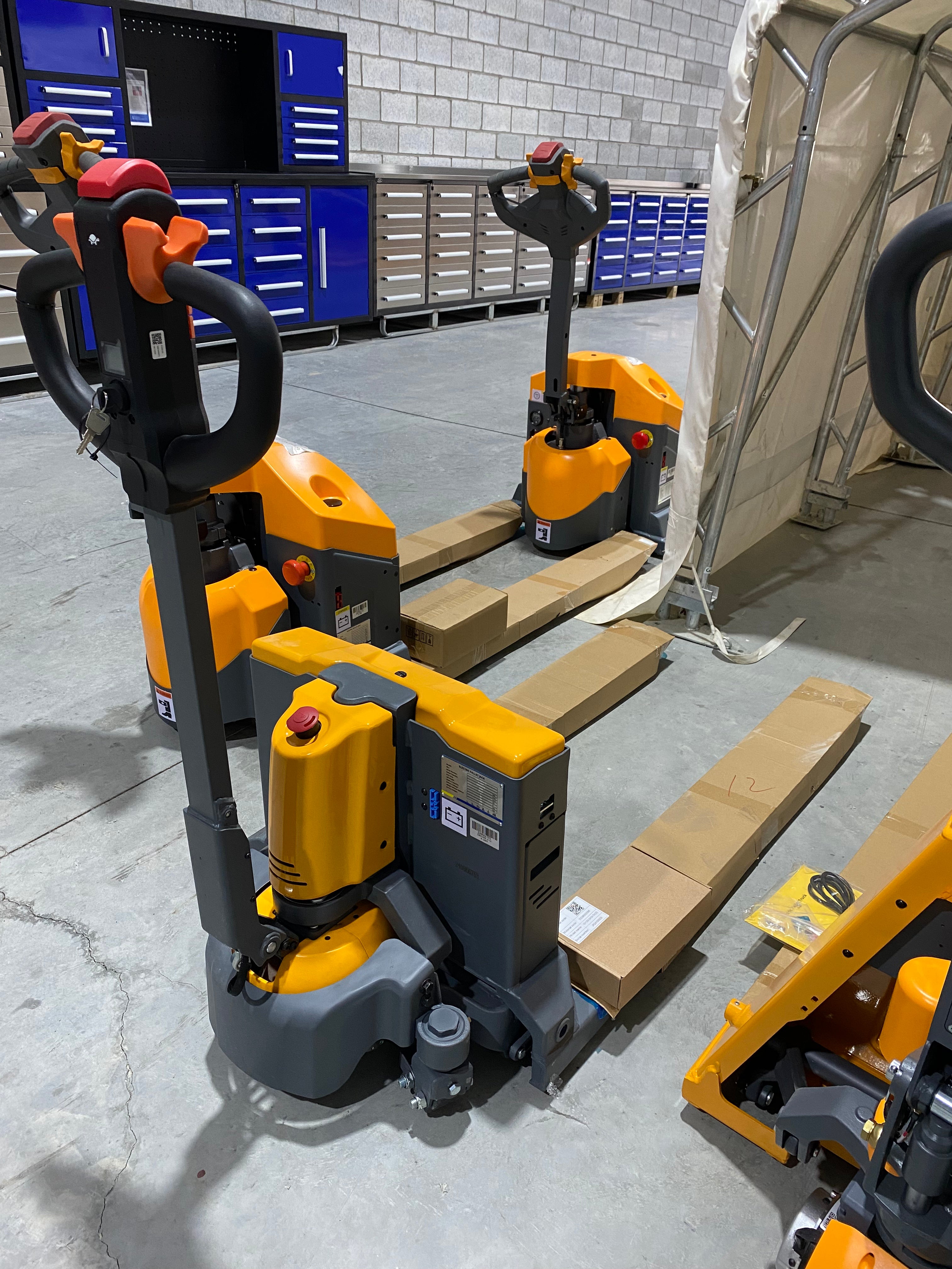 - Chariot avec protection contre les surcharges de levage, limiteur électrique de levage à hauteur maximale et bouton de marche arrière d'urgence. Sûr et fiable.