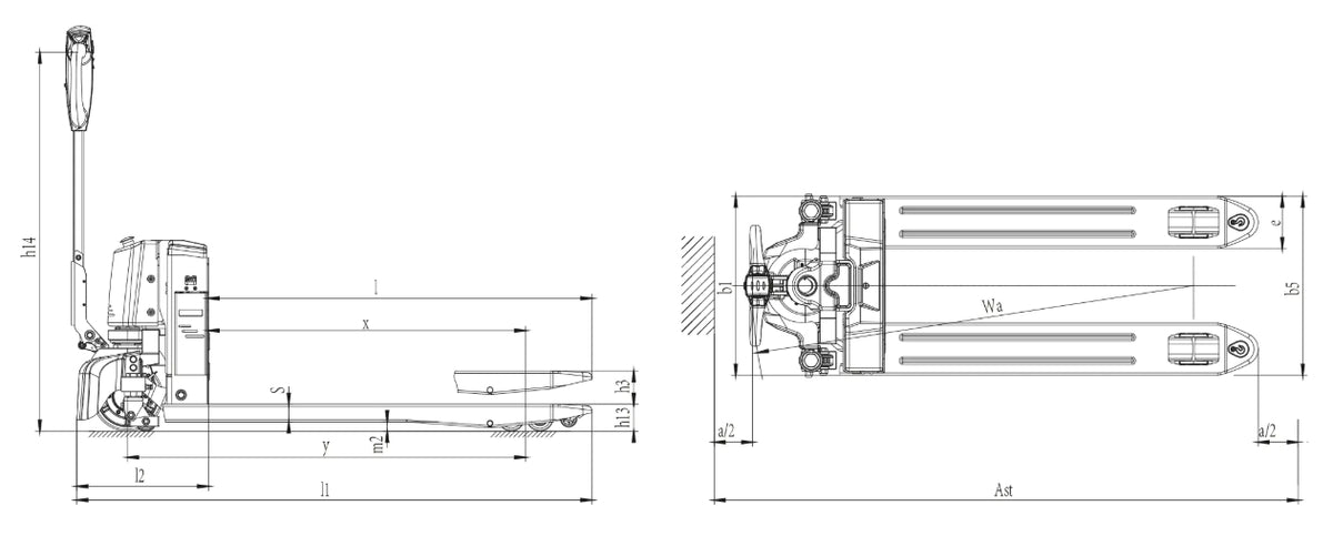 | Longueur jusqu'à la face des fourches | l2(mm) | 395 |