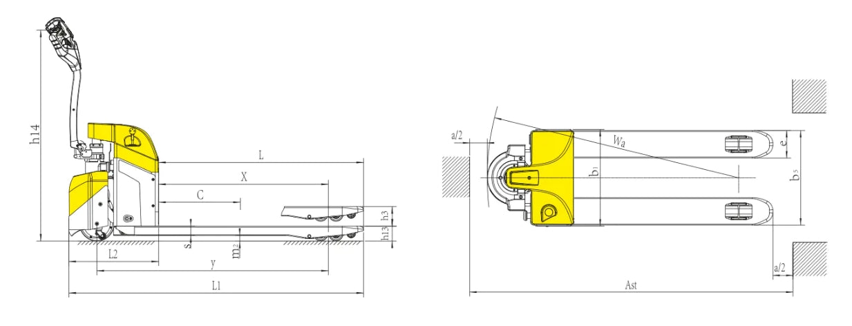 The Mini type with same size as hand pallet truck widely used in narrow aisleworkshop,supermarket & cargo containers